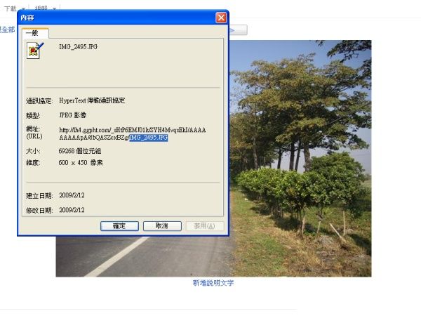 進入picasa網路相片,選擇要貼的照片,按右鍵擷取該網址。