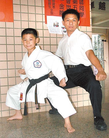 虎尾安慶國小楊岱諺的父親楊智傑為消耗他旺盛體力,四歲時讓他學空手道,無心插柳打出世界金牌,在甫落幕的國際邀請賽中抱回一金、一銅。值得一提的是,楊智傑大受濡染,一年多前跟著學,父成子的學生,還被推舉為全國空手道委員會理事。 台灣小子再度揚名國際,二○○九年第五屆空手道剛柔會世界杯錦標賽上月底在南非開普敦舉行,以雲林選手為主體的台灣代表團表現傑出,在卅六個國家、千名選手的比賽中,摘下四金、一銀、二銅。 台灣空手道剛柔會理事長張靜麗指出,九歲的楊岱諺是代表團年紀最小,表現卻最亮眼的,囊括個人型及對打賽的金、銅牌,小不點兒虎虎生風的英姿,深受其他國家選手喜愛,可愛的模樣,當場就擄獲不少粉絲為他加油。 「當初只是單純想消耗他過盛的體力」,楊智傑說孩子很皮,每天都有用不完的精力,搞得他和太太人仰馬翻,以為送去學空手道消耗精力,回來就能累到自然睡,沒想到,孩子越學越有興趣,身體愈來愈好,體力跟著提升。 雖然沒達到預期效果,楊智傑仍順手推舟,支持兒子進階學習。久而久之,自己竟也培養出喜好,一年多前加入學習行列,兒子成了師父,練習都得先向兒子行尊師禮。 楊岱諺小一開始參加國際賽,迄今已到過日本、香港、新加坡和南非,共五次比賽,小小年紀視野廣闊。「我是徒弟啊!」楊智傑記得首次前往日本參加學習賽,就是兒子帶他出國的,「尊師重道」展露無遺。岱諺已經是初段高手,爸爸才二級。 父子相繼學空手道,熱心的楊智傑因而一頭栽入推廣教育中,先後擔任雲林縣空手道委員會主委,以及台灣空手道委員會理事,成為佳話。