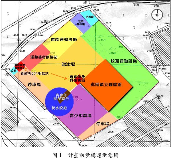 本基地乃是虎尾漁市場雖已於83 年遷建完成,85 年底開始營運,惟因民眾消費習性改變,導致營運一直未見起色。至88 年6 月結束營業,目前則呈現閒置狀態,空間並無有效利用。又因本鎮之青少年活動空間不敷使用,遂有將漁市場基地周邊改建為青少年活動休憩使用,使本計畫之構想概念形成。而有鑑於基地面積充足,以及目前城鎮規劃新思潮中的新世代族群空間缺乏,故於本計畫中,加入青少年活動主題作為規劃方向,使目前漁市場寬廣土地變更為社教用地之特