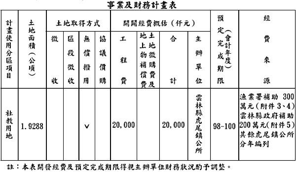 附錄、虎尾鎮社教用地(漁市場改建圖書館及青少年活動場)事業經營管理計畫